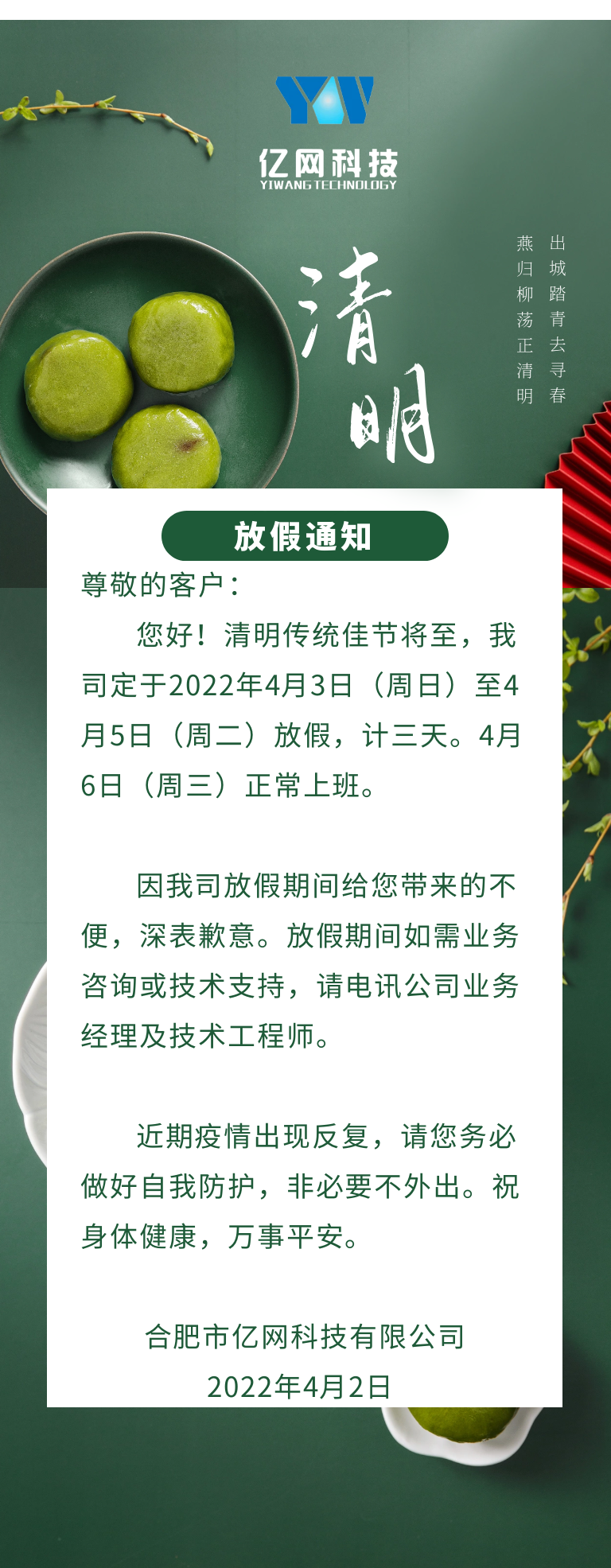 合肥市億網(wǎng)科技有限公司清明節(jié)放假通知
